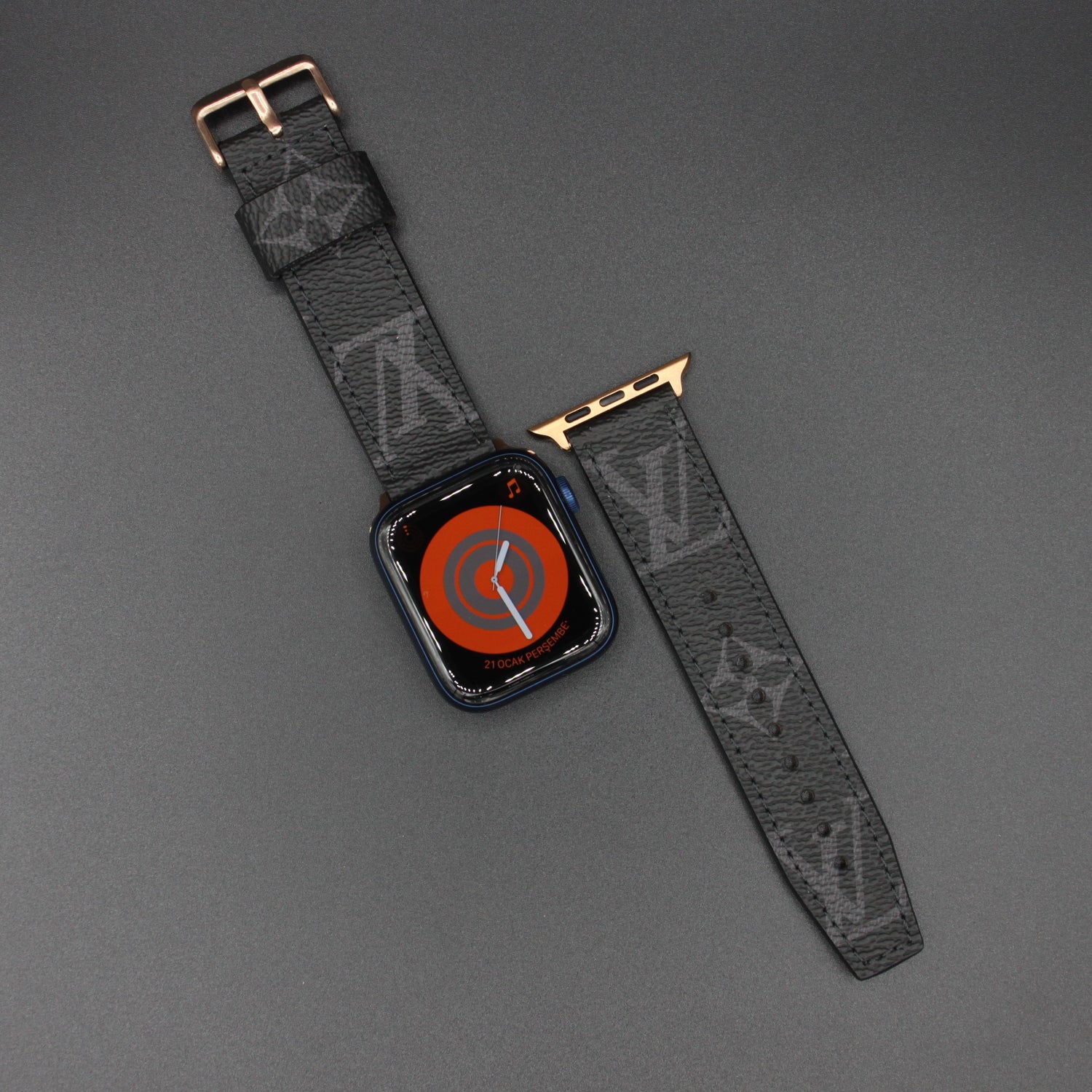 Authentic Apple Watch Strap ; Black Monogram