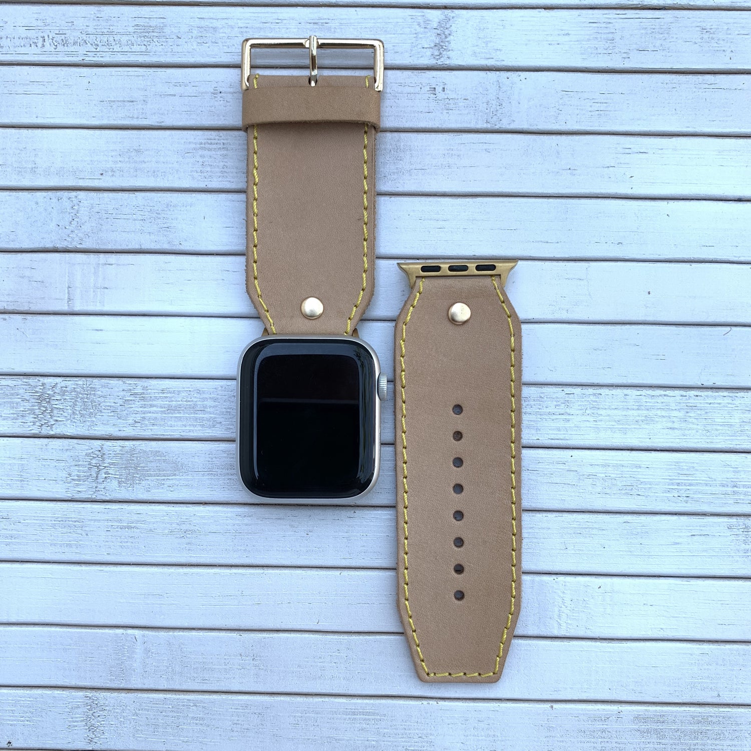 The Vachetta Leather Apple Watch Strap exudes sophistication and style, elevating the look of your beloved timepiece. Crafted from premium, genuine Vachetta leather, renowned for its natural patina and rich texture, this strap promises to age beautifully, developing a unique character over time. Its supple and comfortable design ensures a seamless fit on your wrist, making it perfect for daily wear or special occasions. The luxurious, yet versatile appeal of the Vachetta Leather Apple Watch Strap effortlessly complements both formal and casual outfits, adding a touch of elegance to your overall ensemble. Whether you seek a timeless classic or a contemporary accessory, this meticulously crafted strap strikes the perfect balance, accentuating your Apple Watch with unmatched finesse and flair..